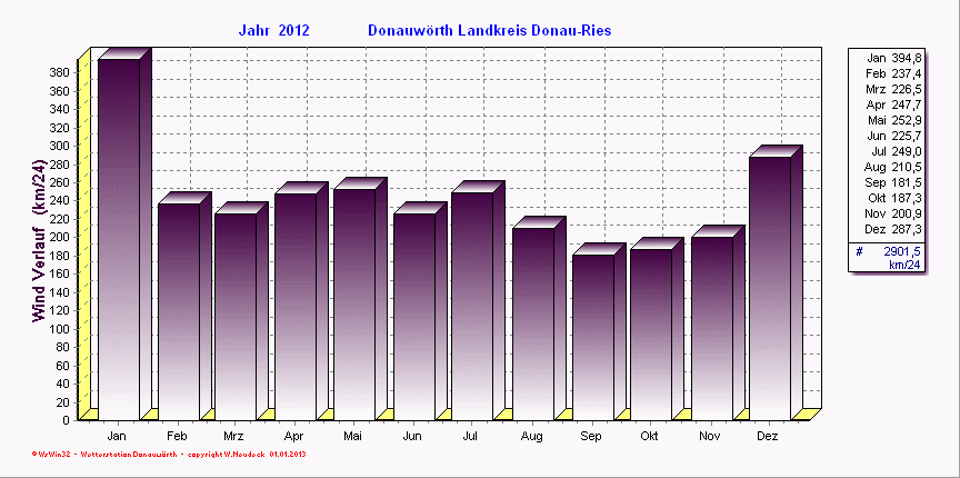 Windverlauf - aufaddierte Windgeschwindigkeiten / Monat