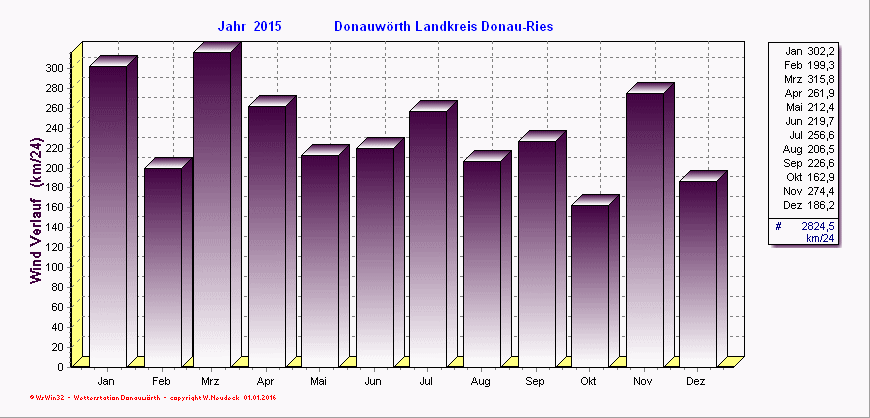 Windverlauf - aufaddierte Windgeschwindigkeiten/ Monat