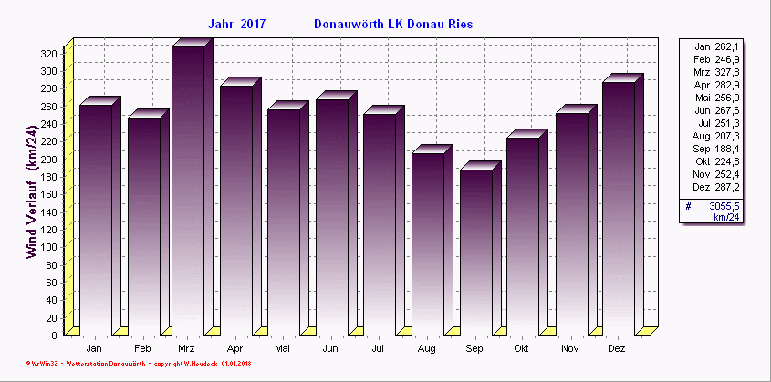 Windverlauf - aufaddierte Windgeschwindigkeiten/ Monat