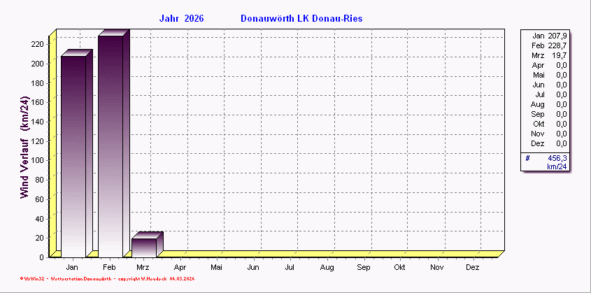 Windverlauf - aufaddierte Windgeschwindigkeiten/ Monat