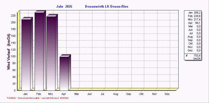 Windverlauf - aufaddierte Windgeschwindigkeiten/ Monat